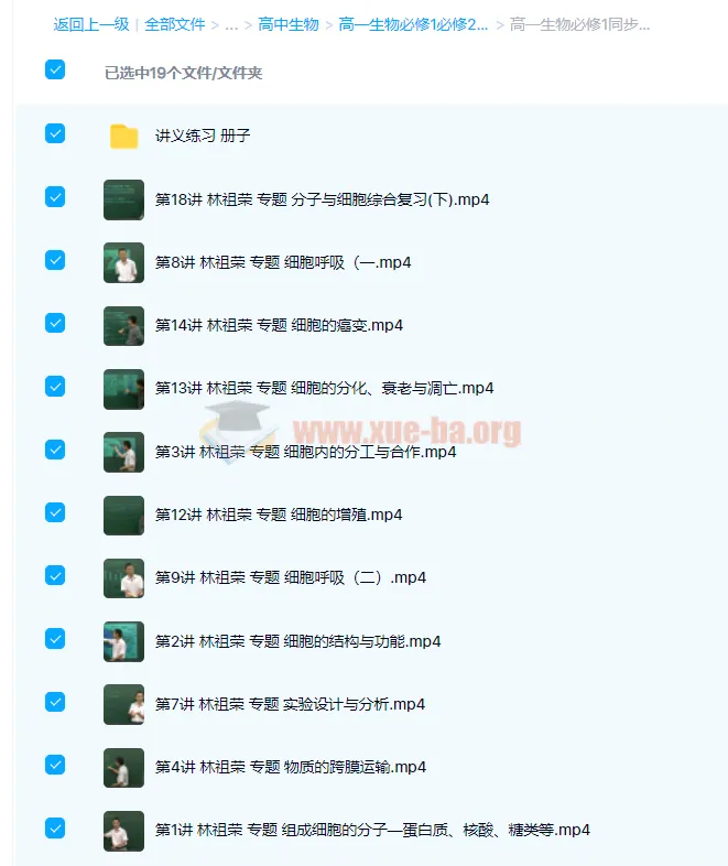 高一生物必修1同步课程不加密 林祖荣18讲3.08GB
