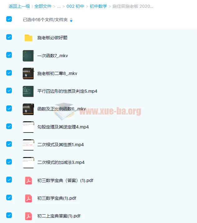 施佳辰施老板 2020寒 初二数学寒假班课程 7讲带讲义完结1.49GB