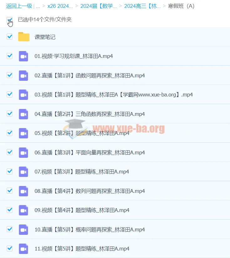 林泽田数学 2024高三高考数学 二轮精讲A+春季班 更新中...