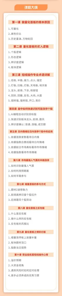 具备“首板”的企业有哪些特点?如何筛选符合首板的优质企业?散户如何构建量化首板投资体系?如何在不稳定的市场下,实现短期套利?1.梳理行业/板块逻辑,综合市场行情,揭秘“首板”企业背后的关键因素⒉.案例分析,助力搭建个人量化首板投资体系...