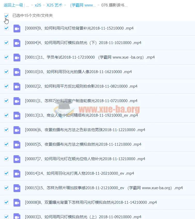商业广告级人像布光原理教程。 本课程将教会学员如何避免光线不均匀、缺乏三维立体感,以及如何把握光源的位置、强度,达到自然而又视觉刺激的摄影效果。 学员还将了解布光技术的科学原理,以及在布光实践中遇到的问题,以拍摄出逼真、富有维度的商业广告级人像照片 ├── 商业广告级人像布光教程——测光表的实际计算方法讲解.mp4 ├── 商业广告级人像布光教程——测光表的综合应用讲解.mp4 ├── 商业广告级人像布光教程——反光伞场景应用实战.mp4 ├── 商业广告级人像布光教程——高速同步和闪光灯持续时间的关系及区别.mp4 ├── 商业广告级人像布光教程——经典商业用光高光(蝴蝶光)实战应用讲解.m…...