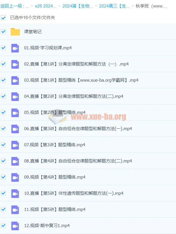 本课程为2024届高考生物系统复习资料,由名师谢一凡主讲,包含三大模块:寒假班(结构与功能观、物质能量观专题)、秋季班(遗传规律/生命活动调节/生态系统)及暑假班(细胞代谢/分裂专题)。通过60+课时直播精讲、题型精练和期末复习,帮助学生掌握高考核心考点,特别强化遗传题、实验题等高频难点。配套详细课堂笔记和专题突破讲义,适合二轮复习查漏补缺,快速提升解题能力,冲刺985/211院校录取分数线。...