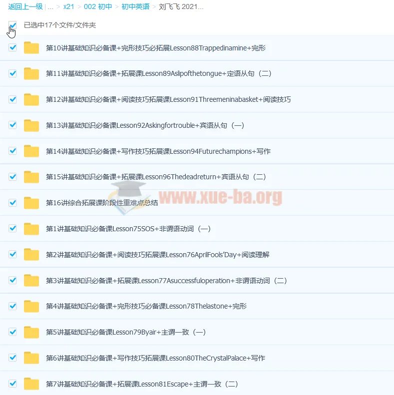 刘飞飞 2021春 初二英语直播勤学班16讲带讲义6.84GB
