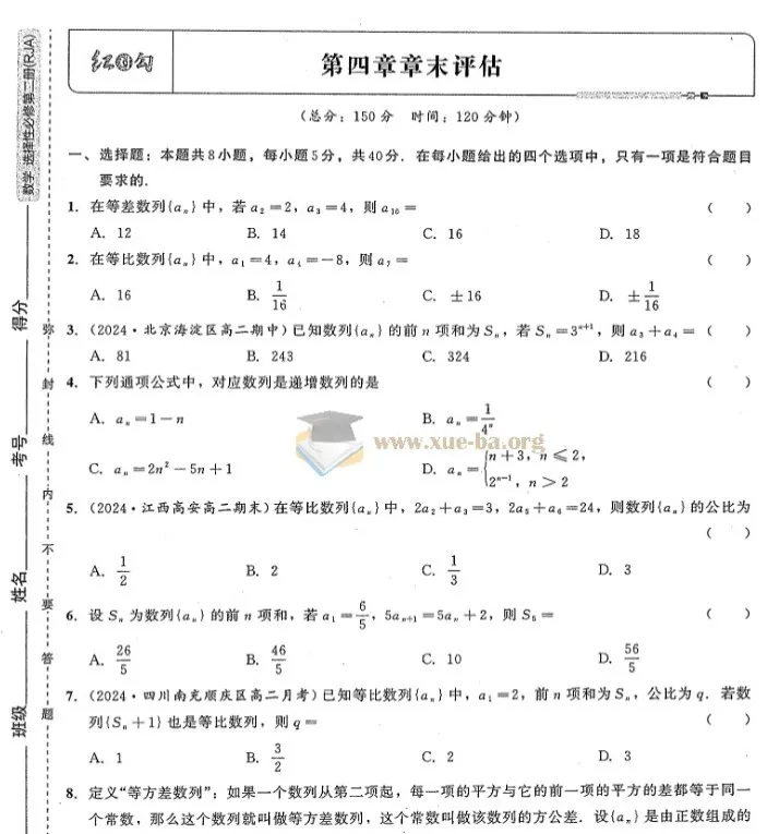 2024秋-《红对勾-45分钟作业与单元评估》高中数学选修二人教A版.pdf22.29MB