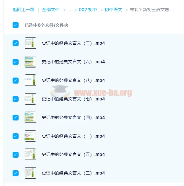 宋北平新初三语文暑假班史记中的经典文言文专题课程3.27GB
