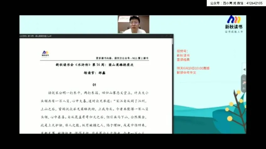 探索《水浒传》的经典故事,邵鑫老师带你深入理解这部中小学必读名著。本课程包含16周的视频讲解和配套PDF资料,每周精选章节如“洪太尉误走妖魔”、“九纹龙大闹史家村”等,通过生动的讲解和详细的分析,帮助学生掌握故事情节、人物性格及背后的历史文化。无论是准备考试还是提升文学素养,这套课程都是你的理想选择。立即加入,开启你的名著探索之旅!