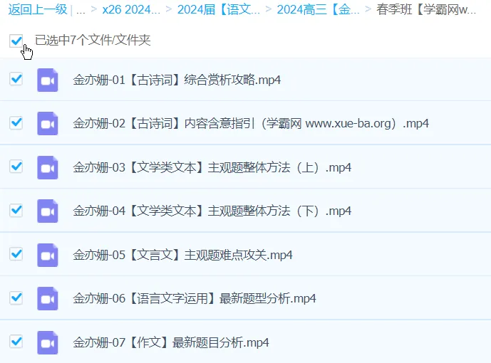 金亦姗语文 2024高三高考语文 春季班 更新中
