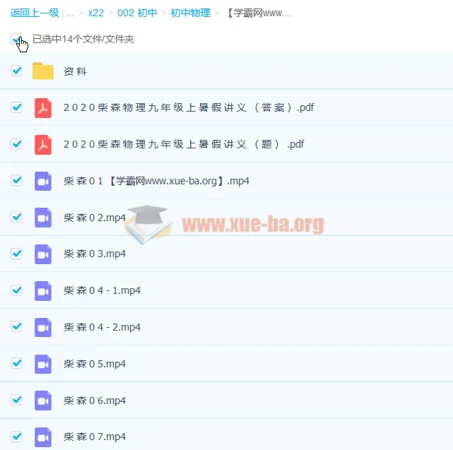 2020年柴森九年级物理暑假班初三物理10讲完结百度网盘分享8.06GB