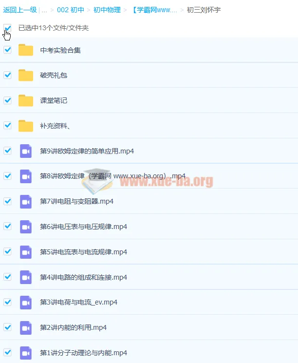 刘怀宇 2020暑 初三物理暑假班 9讲完结带讲义2.92GB