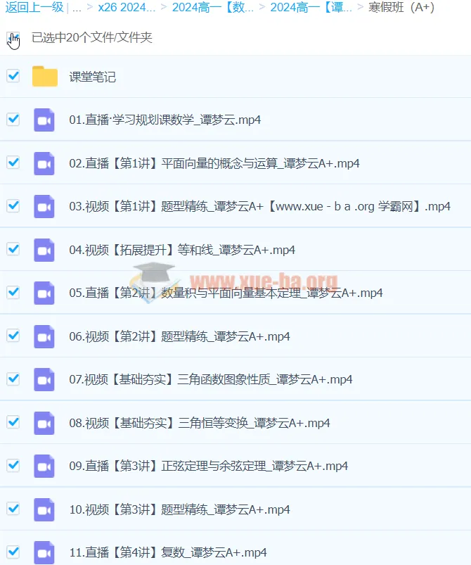2024作业帮 数学 高一 【谭梦云】A-百度网盘资源下载地址由网盘用户[里桑***番桑]分享,包含pdf,mp4等格式共计67个文件,文件大小为9.14GB,分享时间2024-11-01,此百度网盘资源由搜课100网盘搜索引擎收集整理。...