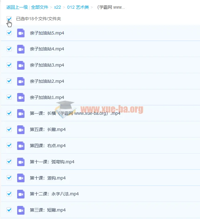 0基础书法启蒙毛笔字 程一墨老师-百度网盘资源下载地址由网盘用户[麦门***ear]分享,包含mp4等格式共计18个文件,文件大小为1.78GB,分享时间2024-11-09,此百度网盘资源由搜课100网盘搜索引擎收集整理。...