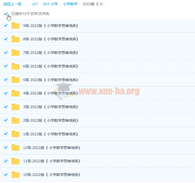 培培爸《小学数学思维课》,、和资源,免费下载。 主要内容:课程强调通过逻辑推理、数形结合等思维训练提升数学能力,采用游戏化教学方式,将抽象数学概念融入生活场景,激发孩子主动探索欲。 2022版《学而思秘籍 小学数学思维培养》(1-12级)PDF+视频 ├── 学而思秘籍-小学数学思维培养教材1+2年级(1234级) ├── 学而思秘籍-小学数学思维培养教材3+4年级(5678级) ├── 学而思秘籍-小学数学思维培养教材5+6年级(9.10.11.12级)...