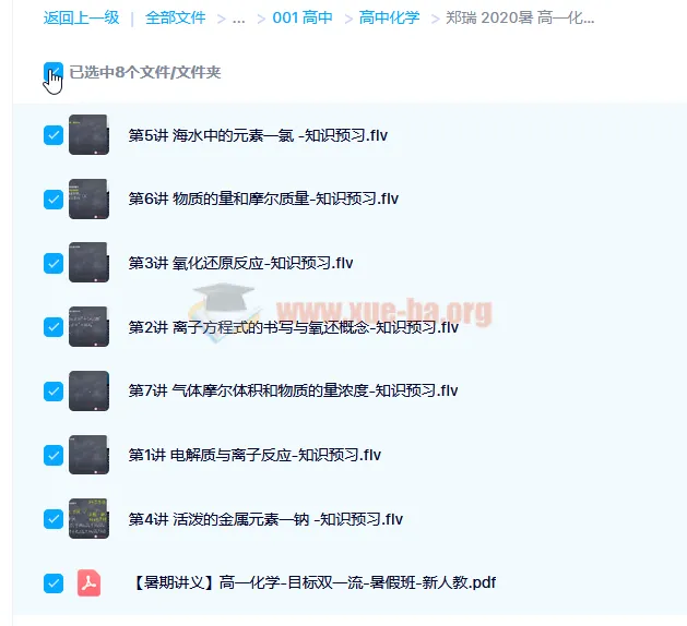 郑瑞 2020暑 高一化学目标双一流暑期直播班 7讲带讲义2.14GB