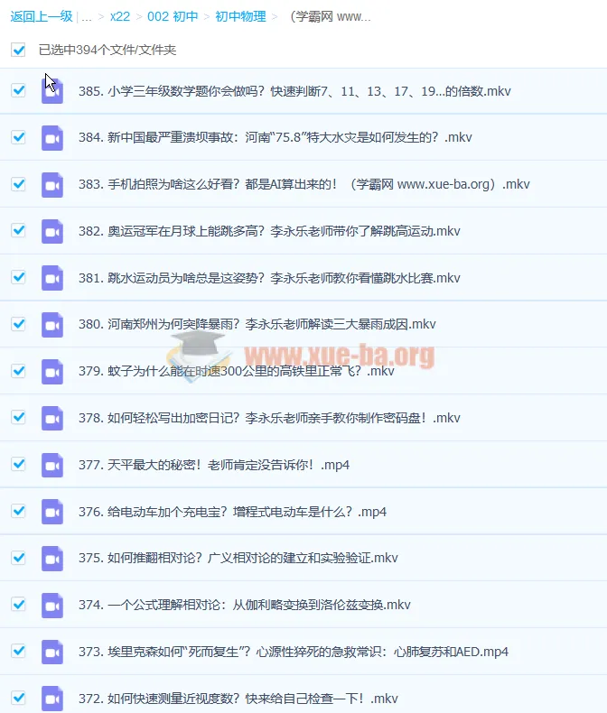 李永乐老师385个物理科普视频 从日常生活中学习物理 百度网盘分享22.08GB
