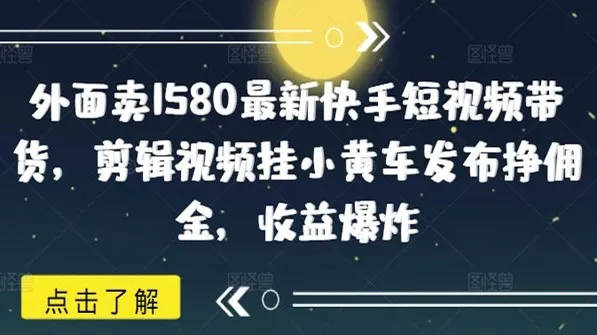 047-20250304-外面卖1580最新快手短视频带货,剪辑视频挂小黄车发布挣佣金,收益爆炸160B