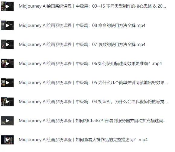 Midjourney AI绘画系统课,零基础新手入门保姆级教程(17节视频),资源下载。