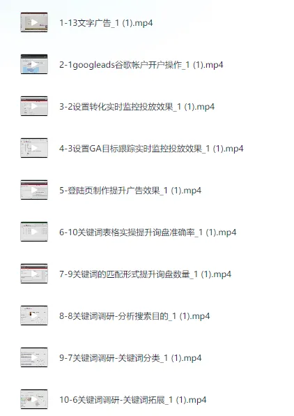 谷歌广告投放教程,订单女神带你挣美金,课程。 本教程通过详细的视频教学,系统讲解了谷歌广告投放的全流程操作,从谷歌账户开户、文字广告制作,到设置转化目标和GA目标跟踪实现实时监控,再到登陆页制作以提升广告效果;课程还深入剖析关键词调研,包括分析搜索目的、分类、拓展和商业定位,以及关键词匹配与规划工具的使用,帮助学员构建科学的广告结构和优化方案,最终通过建立有效广告组实现精准投放,全面提升询盘数量和转化率。订单女神以实战案例带领学员掌握核心投放技巧,让你在全球市场中轻松赚取美金。...