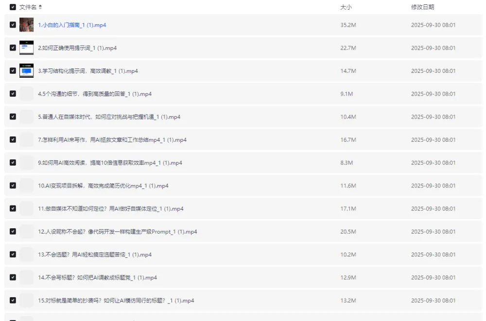 • 夸克网盘 【普通人必学的AI课程-AI自媒体教程】