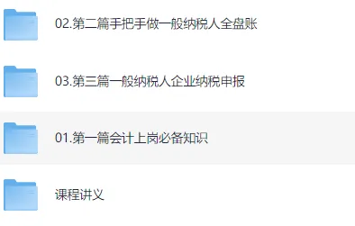 一般纳税人全盘账务处理与纳税申报,包括课程讲义、第一篇会计上岗必备知识、第二篇手把手做一般纳税人全盘账、第三篇一般纳税人企业纳税申报。 ├── 01.第一篇会计上岗必备知识 ├── 02.第二篇手把手做一般纳税人全盘账 ├── 03.第三篇一般纳税人企业纳税申报 ├── 课程讲义...