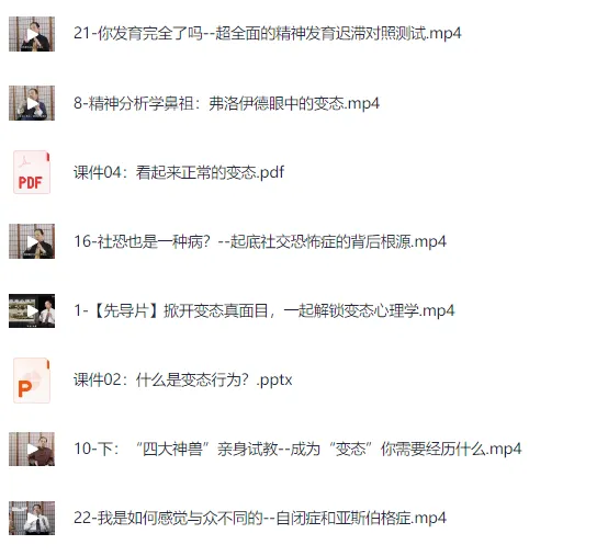 《变态心理学20讲》视频课程适用于各个年龄段的心理学爱好者和专业人士。无论是想要了解自己心理状况的普通人,还是希望提高专业技能的心理咨询师,都能从本课程中获得启发和帮助。