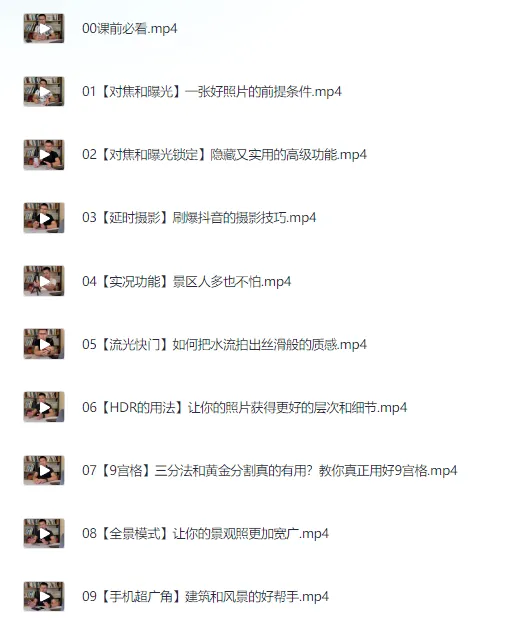 摄影教程技术培训课程简介 张匡龙手机摄影教程,跟全球iPhone摄影大赛“年度最佳摄影师”学手机摄影 你在生活中和出门旅行中总是拍不出好照片? 结果匆匆的买了课程,发现很多假大空的理论,—些课程更像隔靴搔痒,交了学费还是不会拍? 因为你——没有跟对的老师学。 现在跟真正的大师学手机摄影! 本套摄影教程课程共计39节课,课程由浅入升,从基础开始系统完整的讲摄影技巧。无论你是小白还是有一定基础,都可以通过学习本课程提高自己的摄影能力。 课程老师简介: 张匡龙,2017全球iPhone摄影大赛,“年度最佳摄影师”和“日落组金奖”。 17张照片获奖,成为140多个国家参赛者中,获奖数量最多摄影师。 2…...