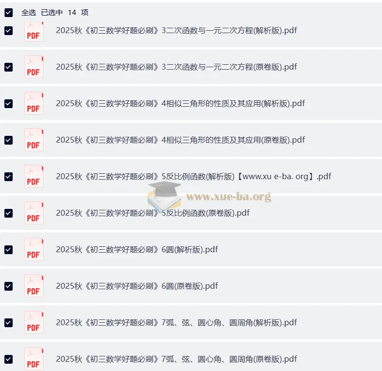 2025秋《初中数学•好题必刷》9年级【夸克】-夸克网盘资源下载地址由网盘用户[快乐*e爱8]分享,包含pdf等格式共计14个文件,文件大小为13.84MB,分享时间2025-09-04,此夸克网盘资源由搜课100网盘搜索引擎收集整理。...
