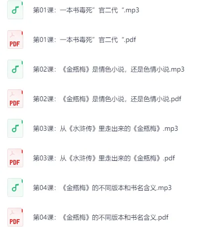 刘心武付费课:金P梅·揭秘成人世界的欲望与人生-夸克网盘资源下载地址由网盘用户[心旷*怡的银杏]分享,包含pdf,mp4,mp3等格式共计100个文件,文件大小为993.42MB,分享时间2025-05-31,此夸克网盘资源由搜课100网盘搜索引擎收集整理。...