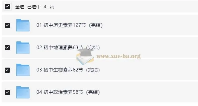 初中小四门核心素养课(内含课程、知识清单、习题)2.93GB