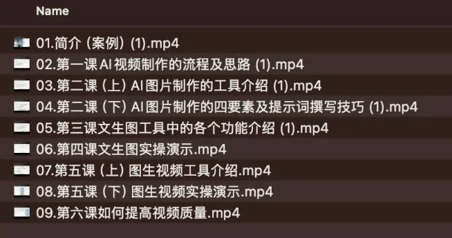 AI视频制作从入门到爆款,从文生图到图生视频,全链路打造自媒体爆款视频,课程。这门课程面向零基础创作者,系统讲解如何借助AI工具完成从文字到图片、再到视频的全流程操作。课程首先梳理AI视频制作思路,接着介绍主流文生图、图生视频工具及其核心功能,并传授高效提示词撰写方法。在实操演示环节里,会通过案例演练让学员掌握图片生成与视频合成技巧,最后聚焦画面与剪辑优化,帮助提升成片质量。完整目录涵盖课程概览、制作流程、图片工具介绍与四要素提示词、文生图功能与实操、图生视频工具演示,以及质量提升技巧,共九个模块,让学员在短时间内具备独立打造自媒体爆款视频的能力。 ├── 01.简介(案例) (1).mp4 …...