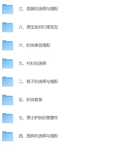 坏男孩学院 型男计划,包括形象改造、鞋子的选择、西装的选择、西裤的选择、时尚单品套装、男士护肤、男生如何打理发型、衬衫的选择等内容课程,和PikPAk网盘资源下载。