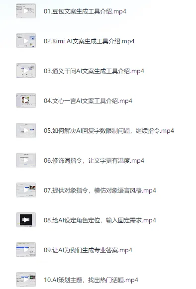 AI文案创作与AI视频制作实战课,课程下载。这门实战课程系统拆解AI文案创作与视频制作全流程,涵盖超20款主流工具实操技巧。文案创作部分详解豆包、Kimi、通义千问、文心一言等工具的核心功能,重点突破字数限制解决方案,传授修饰词指令增强文字感染力、角色定位指令锁定专业内容、对象模仿指令复刻语言风格等进阶技巧。学员将掌握热点话题挖掘、视频拍摄脚本生成、电影解说创作、情景短剧剧本设计等场景化应用,更包含长篇小说创作指令与智能体搭建等深度内容。