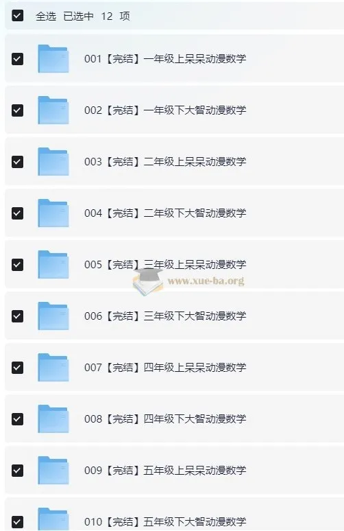 小学数学动画课程《大智与呆呆动漫数学》【15G】-夸克网盘资源下载地址由网盘用户[]分享,共计个文件,文件大小为-,分享时间2024-12-09,此夸克网盘资源由搜课100网盘搜索引擎收集整理。...