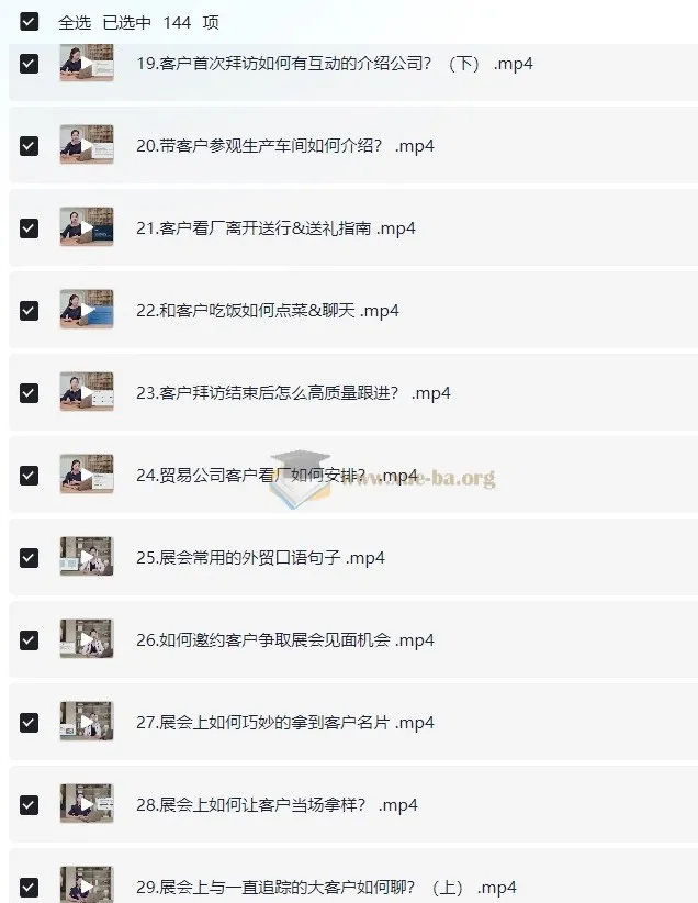 外贸全能商务英语课,学完轻松谈生意 轻松拿订单。 外贸全能商务英语课,涵盖商务英语沟通与谈判技巧,助力学员掌握专业外贸知识。课程注重实战应用,学完即可轻松应对商务场合,有效谈判促成交易,轻松拿下订单,提升业务能力与业绩。 ├── 1.十天成交230+万美金订单全复盘(上) .mp4 ├── 2.展会客户常问的问题有哪些?(上) .mp4 ├── 3.外贸12年如何年薪百万?(上) .mp4 ├── 4.外贸12年如何年薪百万?(下) .mp4 ├── 5.如何快速学习外贸职场英语? .mp4 ├── 6.你应该准备的一份专业的外贸人自我介绍 .mp4 ├── 7.一份专业的公司介绍你有吗? .…...