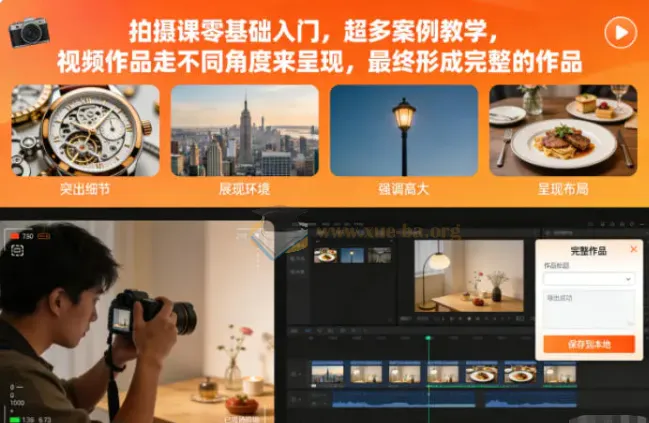 拍摄课零基础入门 超多案例教学 视频作品走不同角度来呈现 最终形成完整的作品