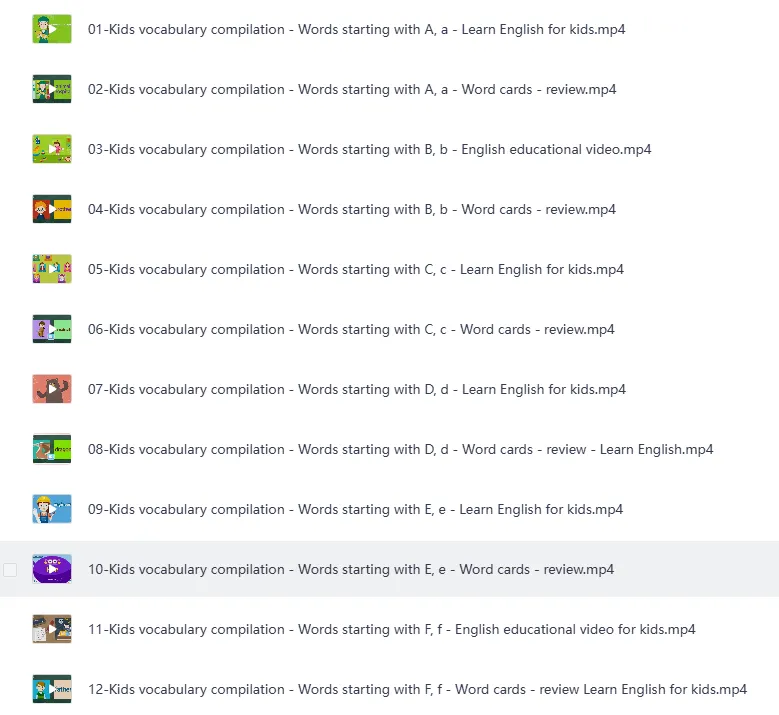 10-Kids vocabulary compilation - Words starting with E, e - Word cards - review.mp46.65MB