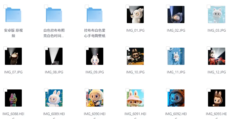 拉布布labubu动态壁纸,课程资源。这份拉布布Labubu主题资源包,专为粉丝打造动态壁纸体验,包含丰富文件支持安卓和苹果设备。安卓用户能找到原版视频和详细设置教程,如动态壁纸配置指南,覆盖手机锁屏与主屏幕版本;苹果设备提供实况壁纸HEIC格式,附带操作说明,轻松实现动态效果。资源包还囊括白色爱心手电筒壁纸、照亮时间主题设计,以及朋友圈动态视频,适配平板和电脑端使用。所有文件清晰分类,从静态图片到动态视频,满足个性化需求,让拉布布角色生动点亮你的设备屏幕。 ├── 安卓版 原视频 ├── 白色拉布布照亮白色时间壁纸 ├── IMG_01.JPG ├── IMG_02.JPG ├── IMG_…...