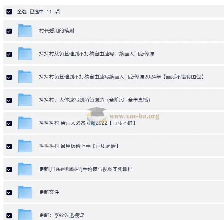 抖抖村负基础到不打稿自由速写绘画入门必修课2024年【画质不错有图包】11.37GB
