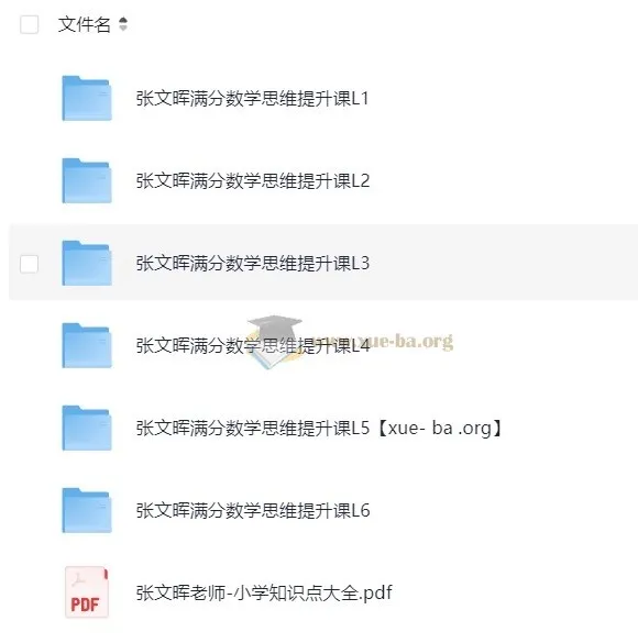 满分数学L1-L9视频课。 搞定小、中9年数学,课程亮点满满,L1-L9全覆盖,从简单的加减法,一路到分数、方程、几何,循序渐进,不管你家娃是几年级,都能找到合适自己的内容,轻松打好数学基础,稳步提升! ├── 满分数学先导课(学前必看).mp4 ├── 张文晖老师-小学知识点大全.pdf ├── 张文晖满分数学7-9年级视频课 ├── 张文晖满分数学思维提升课L1 ├── 张文晖满分数学思维提升课L2 ├── 张文晖满分数学思维提升课L3 ├── 张文晖满分数学思维提升课L4 ├── 张文晖满分数学思维提升课L5 ├── 张文晖满分数学思维提升课L6...