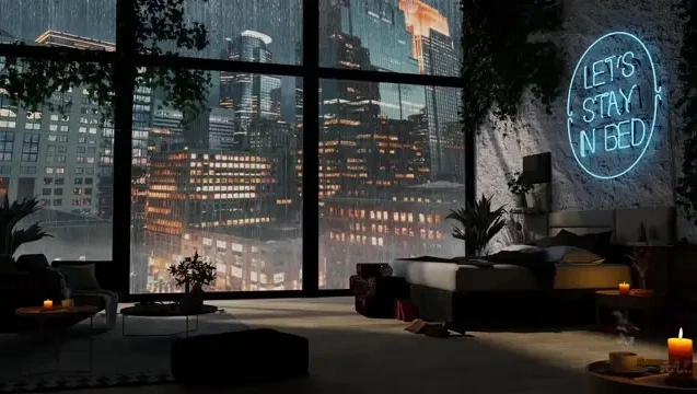 Cozy Atmosphere With a Night View of a Rainy City Rain sounds 8 Hours Rain on Window Study.mp498.39MB