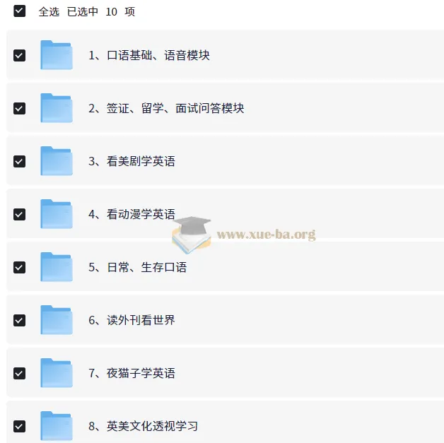 这套课程其实是个合集,从基础口语开始学习,然后就是场景化的问题,比如面试招聘,签证留学,到怎么利用美剧电影提高听力和阅读理解能力,内容很多,就不一一介绍了,感兴趣的看看