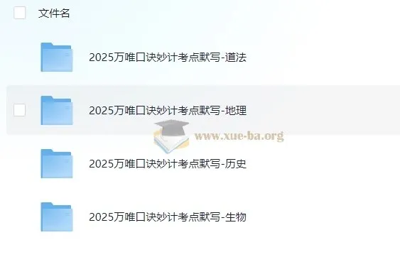 包括初中道法、地理、历史、生物四门课口诀妙计和考点默写,帮助学生加深知识记忆。...