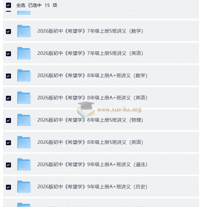 2026版初中《希望学》培训班讲义789年级上册(英数理化历道)4.22GB