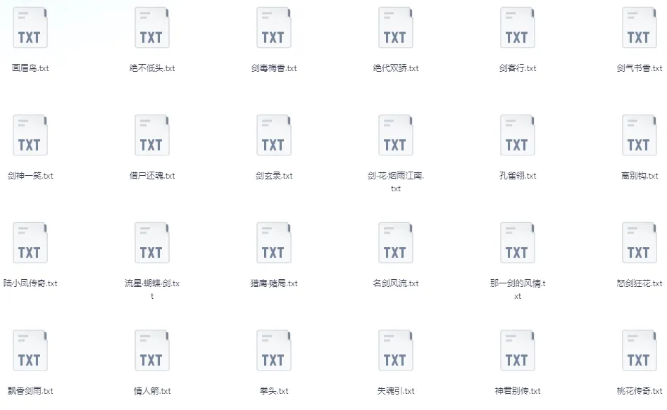 【书刊】📚 武侠五大家小说全集(金庸、古龙、梁羽生、温瑞安、黄易武)-夸克网盘资源下载地址由网盘用户[A_*色幻想]分享,包含txt,TXT等格式共计225个文件,文件大小为131.31MB,分享时间2025-10-25,此夸克网盘资源由搜课100网盘搜索引擎收集整理。...
