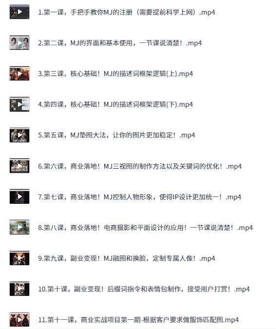 介绍 3天掌握midjourneyAI绘图+视频,资源。 无论你是萌新小白,还是设计师,都能从这门课中受益。 学习后,你将进入一个全新的创意世界,通过最前沿的AI技术,进行你的创作。 在节约时间成本的同时,也还能获得更多副业变现和商业变现技能,帮你提高效率增加收入。...