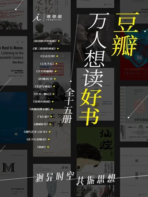 豆瓣万人想读好书系列(全十五册)包括《政治秩序的起源》《第三帝国的到来》《万古江河》《文化失忆》《天才的编辑》《扫地出门》《生活与命运》《打开一颗心》《光明共和国》《夜晚的潜水艇》《飞行家》《聋哑时代》《现代艺术150年》《余下只有噪音》《仙症》