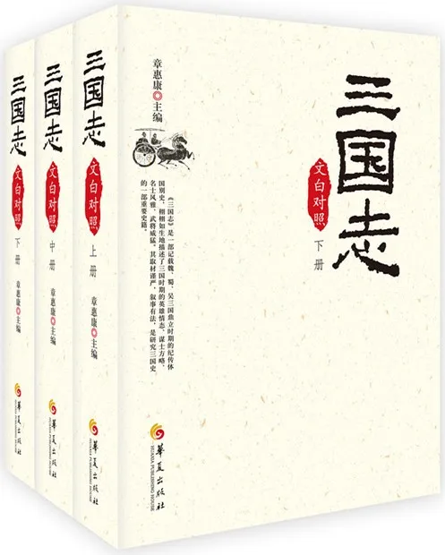 《三国志(文白对照)(套装上中下册)》旨在帮助读者读懂《三国志》原文,排版采用左、右两栏排列:左栏为原文,右栏为译文,左右对照,阅读方便,也便于检验译文是否正确和落到实处。《三国志(文白对照 套装上中下册)》原文依照中华书局标点本,对其校勘,径直改正,即删去圆括“”及“某”和方括弧“〔〕”,保留校勘字。对标点本点校疑义处,我们再三酌情,定于一是,在译文中改正。为方便读者,本书将原文中的古字、繁体字均改为简体字,异体字采用常用字,通假字则不改。本书译文是在今注的基础上进行的,以直译为主,辅以意译,力求准确、明达。对于抽象的论说和疏、诏以及总结性特强、行文跳跃、又用典故、极难译的评和赞,则适当采取意译的办法。《三国志》通行本原有〔南朝·宋〕裴松之的注,它增补了大量的史料,弥足珍贵,具有重要价值。今将裴松之的注附在各卷之末。