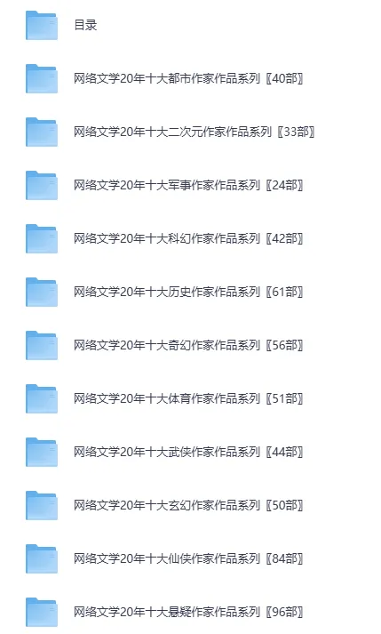 网络文学20年十大二次元作家作品系列〖33部〗186.08MB