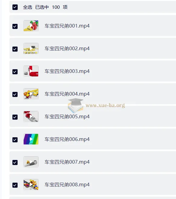 儿童动画片|【动画合集】B3852-车宝四兄弟-百度网盘资源下载地址由网盘用户[dao****ei4]分享,包含mp4等格式共计200个文件,文件大小为23.18GB,分享时间2024-10-22,此百度网盘资源由搜课100网盘搜索引擎收集整理。...
