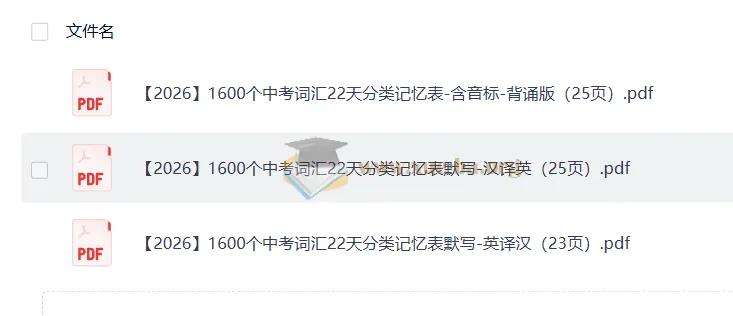 【2026】1600个中考词汇22天分类记忆表-含音标-背诵版(25页).pdf753.46KB