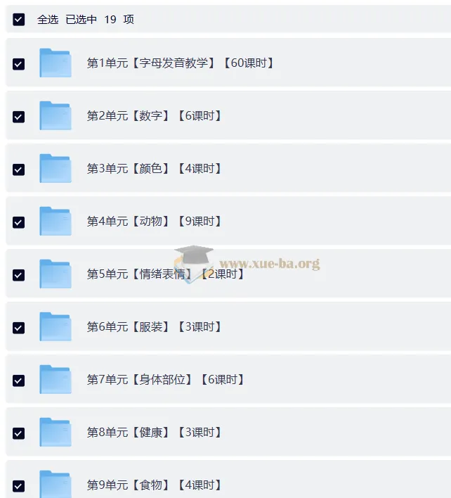 介绍 《ELF Learning》适合零基础孩子的英语启蒙动画。 ├── 第1单元【字母发音教学】【60课时】 ├── 第2单元【数字】【6课时】 ├── 第3单元【颜色】【4课时】 ├── 第4单元【动物】【9课时】 ├── 第5单元【情绪表情】【2课时】 ├── 第6单元【服装】【3课时】 ├── 第7单元【身体部位】【6课时】 ├── 第8单元【健康】【3课时】 ├── 第9单元【食物】【4课时】 ├── 第10单元【动作】【12课时】 ├── 第11单元【我的家】【5课时】 ├── 第12单元【学校】【7课时】 ├── 第13单元【我的城市】【6课时】 ├── 第14单元【交通工具】【…...